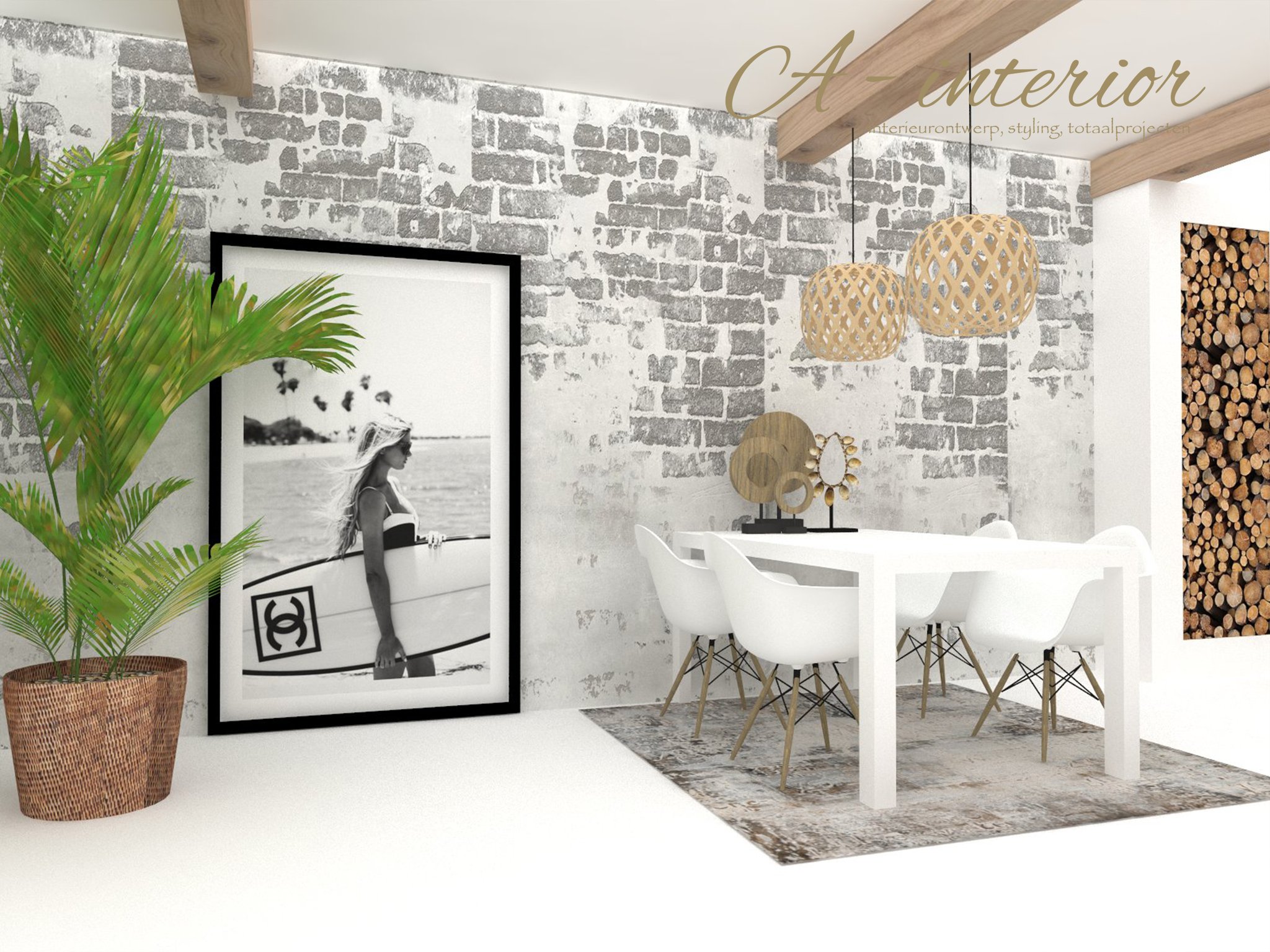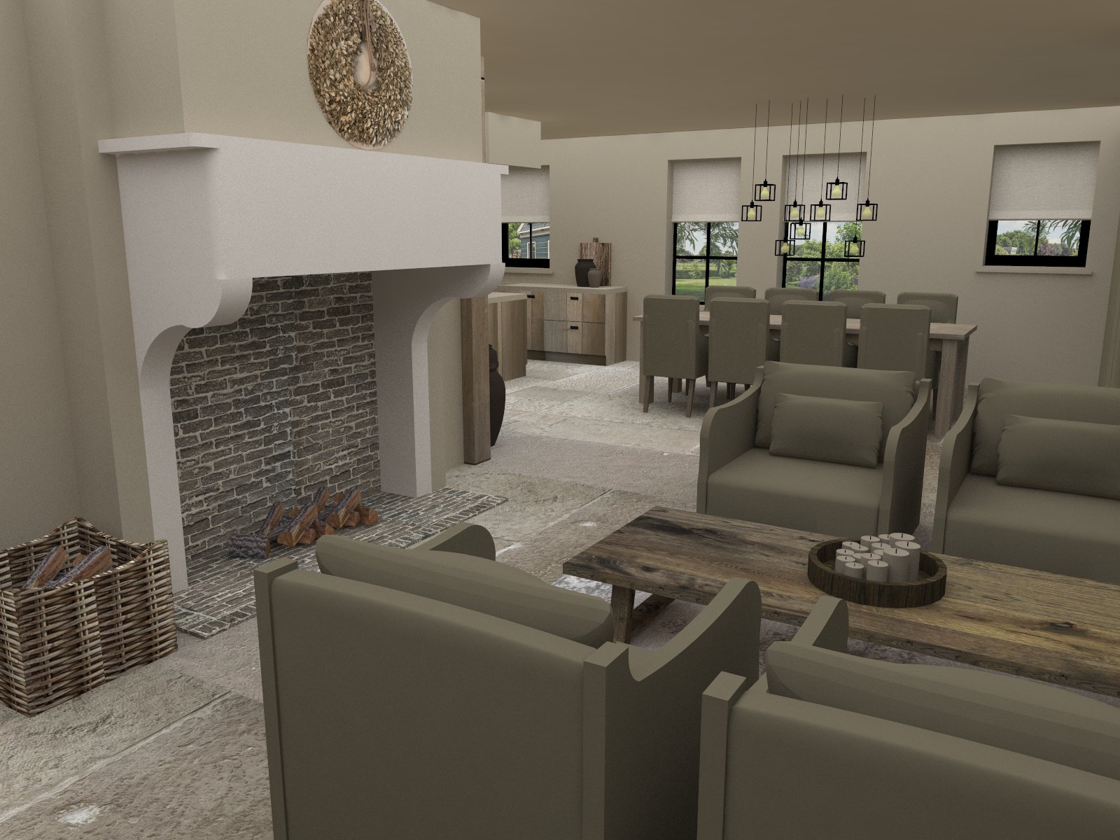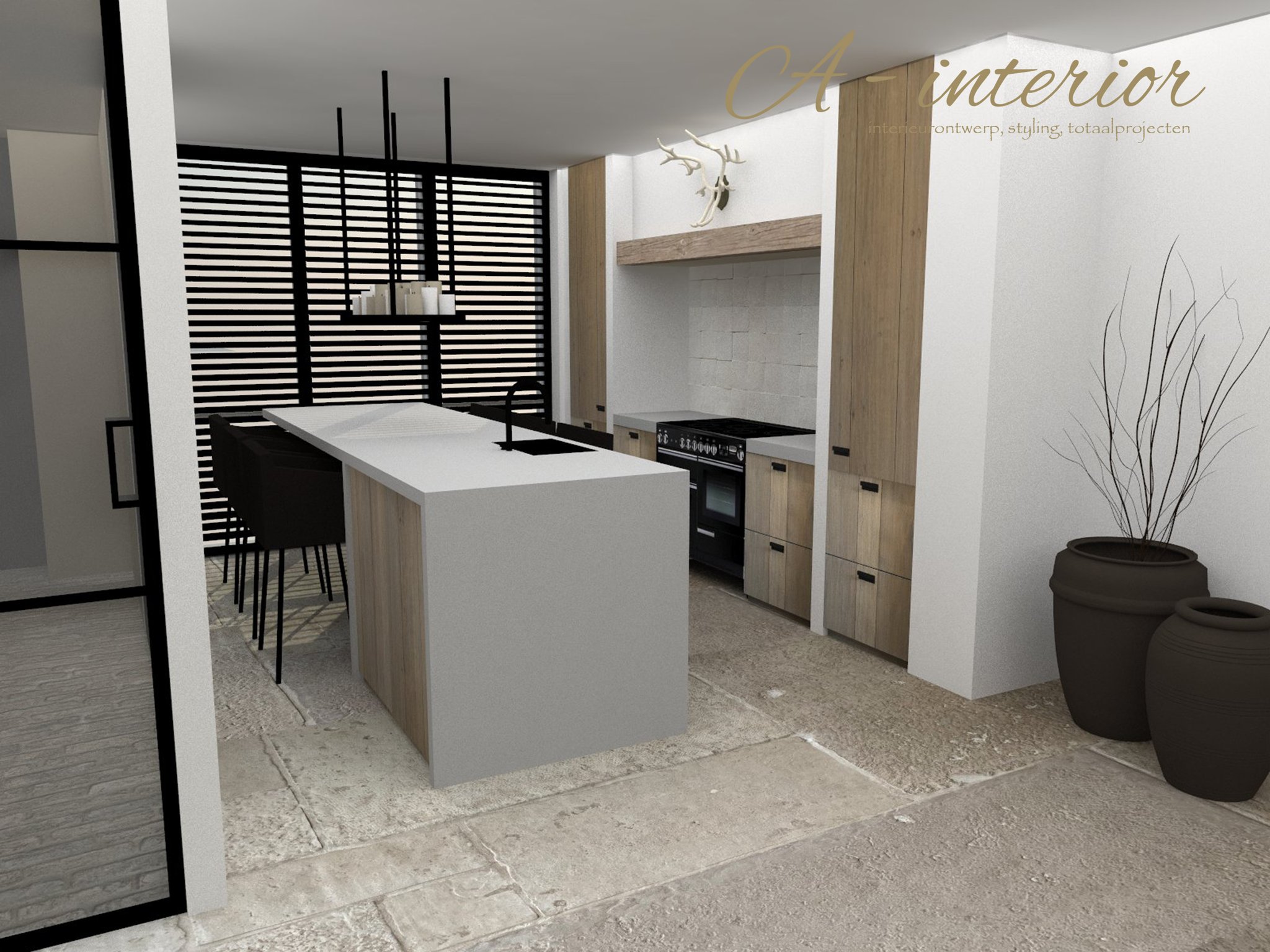 Bij deze woning in Bleiswijk, was de opdracht, het ontwerpen van de woonruimte, keuken, eetgedeelte en hal. A-interior heeft een concept bedacht, een plattegrond en 3D ontwerp gemaakt. De stijl van dit project is stoer en landelijk, met veel robuuste houten accessoires en aarde tinten.