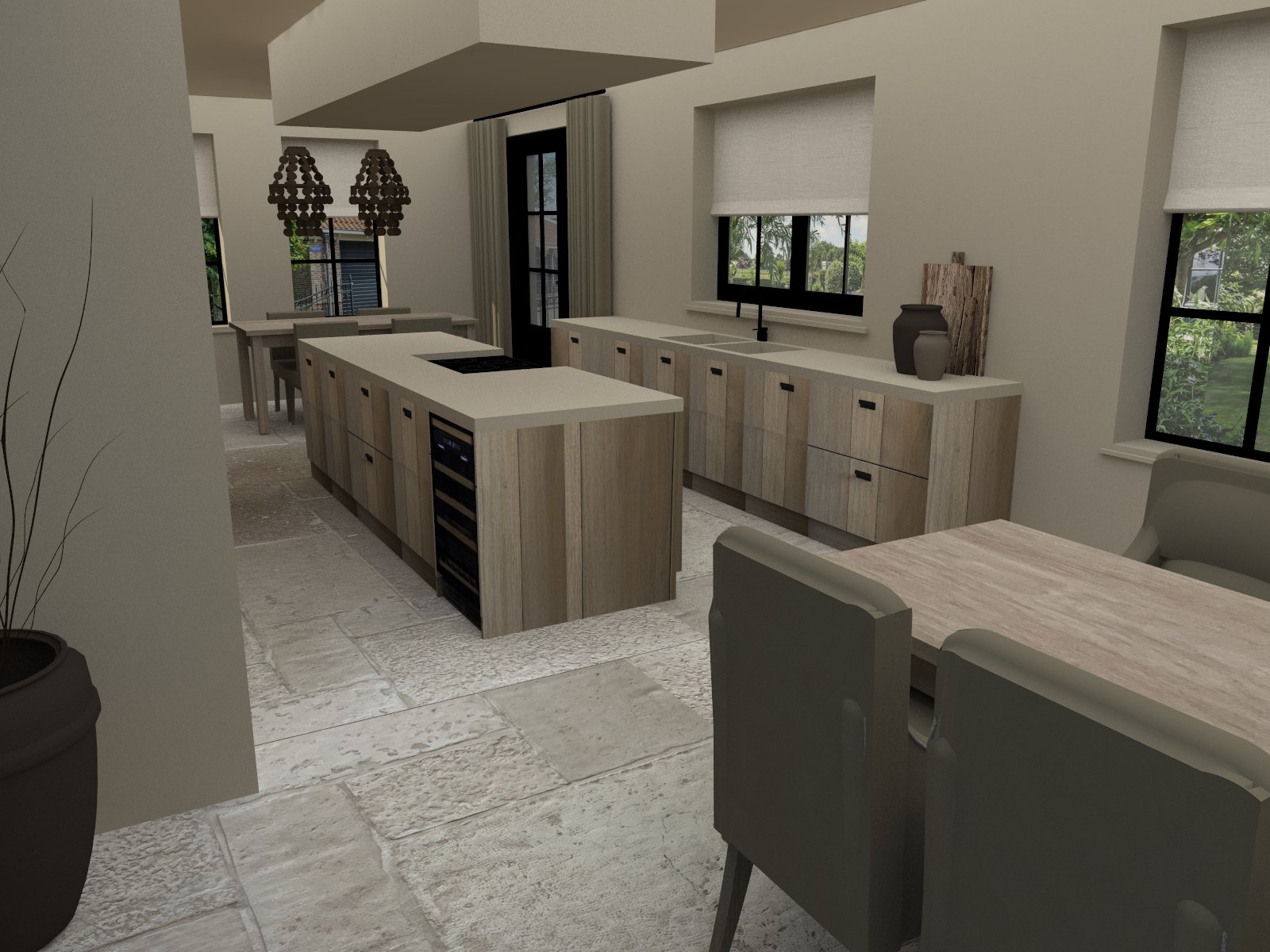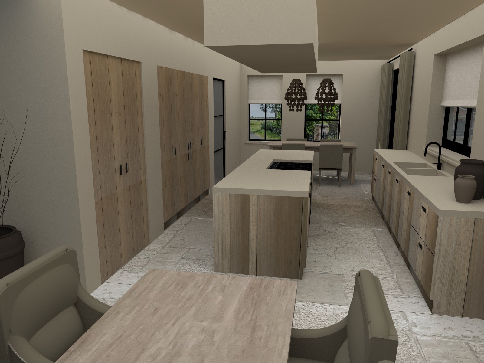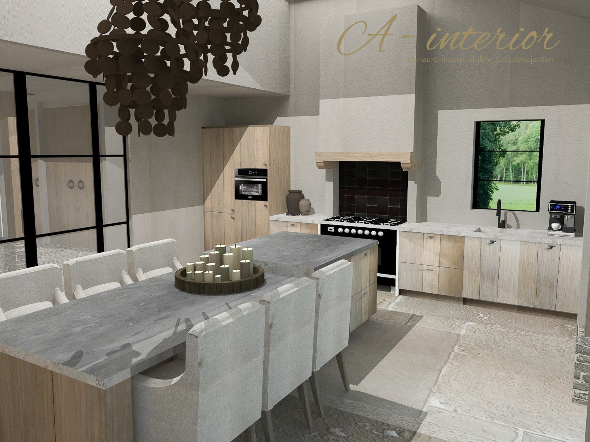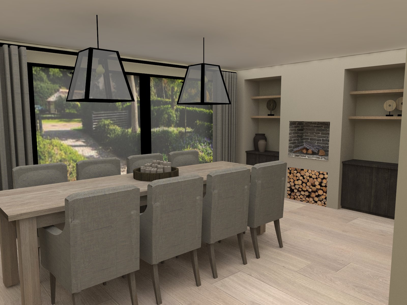 Bij deze woning in Bleiswijk, was de opdracht, het ontwerpen van de woonruimte, keuken, eetgedeelte en hal. A-interior heeft een concept bedacht, een plattegrond en 3D ontwerp gemaakt. De stijl van dit project is stoer en landelijk, met veel robuuste houten accessoires en aarde tinten.